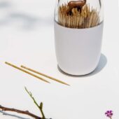 - Clear tooth-pick holder cover keeps toothpicks sanitary