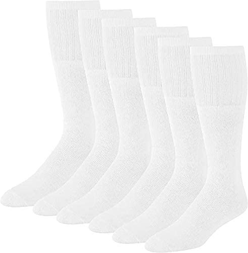 Tube Socks Men 6 Pairs Premium Cushion Cotton Over The Calf Athletic Knee-High Socks For Men White Size 9-15